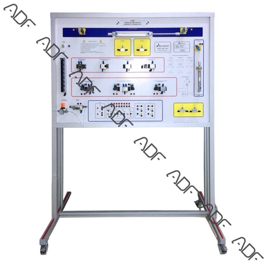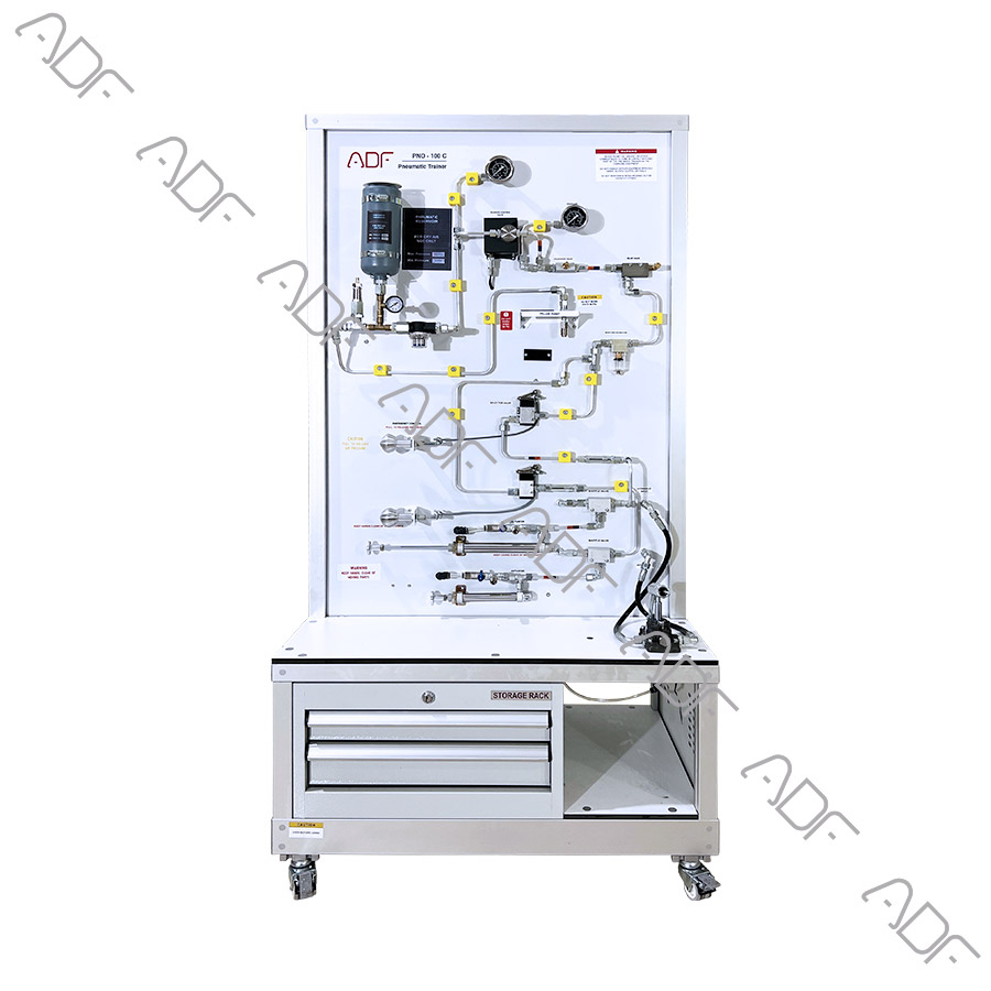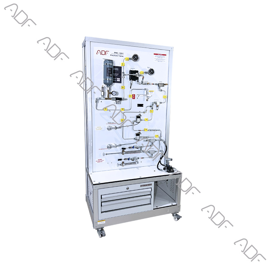 The Aircraft Pneumatic System Trainer is designed to provide hands-on training on a functional pneumatic system. The system represents a pneumatic system that is used as an emergency backup for hydraulic system. A typical example is emergency braking system in case of hydraulically actuated brake failure. The trainer can be operated by a switch which allows the air pressure from a reservoir to operate an actuator. The reservoir can be refilled after use from any pressurized air source like shop air or air compressor.