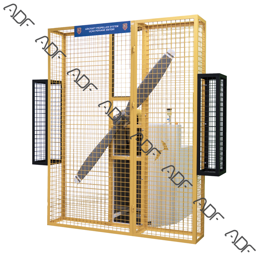 Trainees examine and learn propeller operation procedures and maintenance procedures in runnable aircraft propeller training set.
