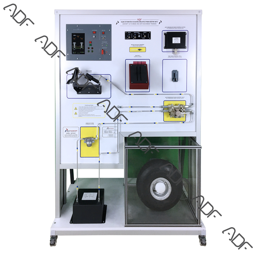Our Anti-skid and Auto Braking System Training Set is designed to represent the anti-skid braking system that is one of the most essential components of modern jet aircraft. This training set gains more importance as the need for training maintenance technicians in this area keep increasing. Hands-on training provided by this set ensures that trainees not only comprehend the theory, but they are also well prepared in practice to maintain the anti-skid braking system. Anti-skid and Auto Braking System Training Set includes a typical hydraulic brake system as well as the anti-skid assemblies and components. It is designed to meet or exceed the FAR requirements for instruction on aircraft anti-skid braking system. This training set contains one wheel.