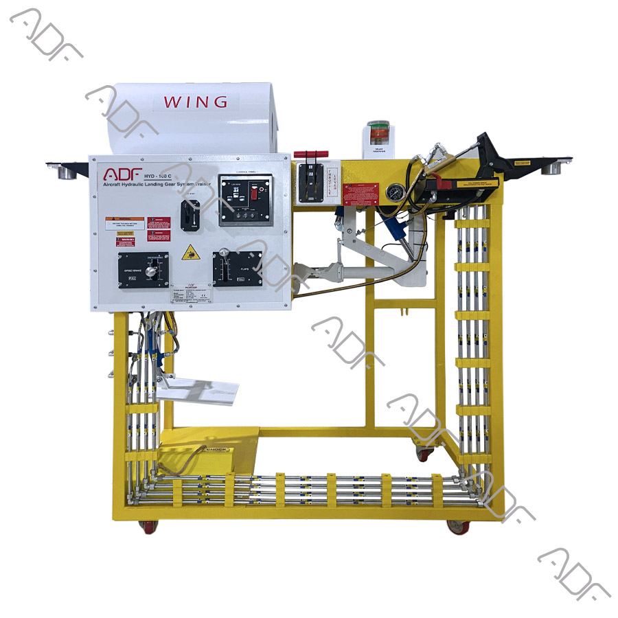 HYD-100V Landing Gear Module for offers effective hands-on training for aircraft landing gear system maintenance trainees.It assures that technicians are trained to maintain the landing gear system in the best way possible and in accordance with safety standards. It displays the landing gear mechanism as found in actual aircraft. This trainer is designed to represent a landing gear system. It contains all components and assemblies of an actual hydraulic landing gear system.