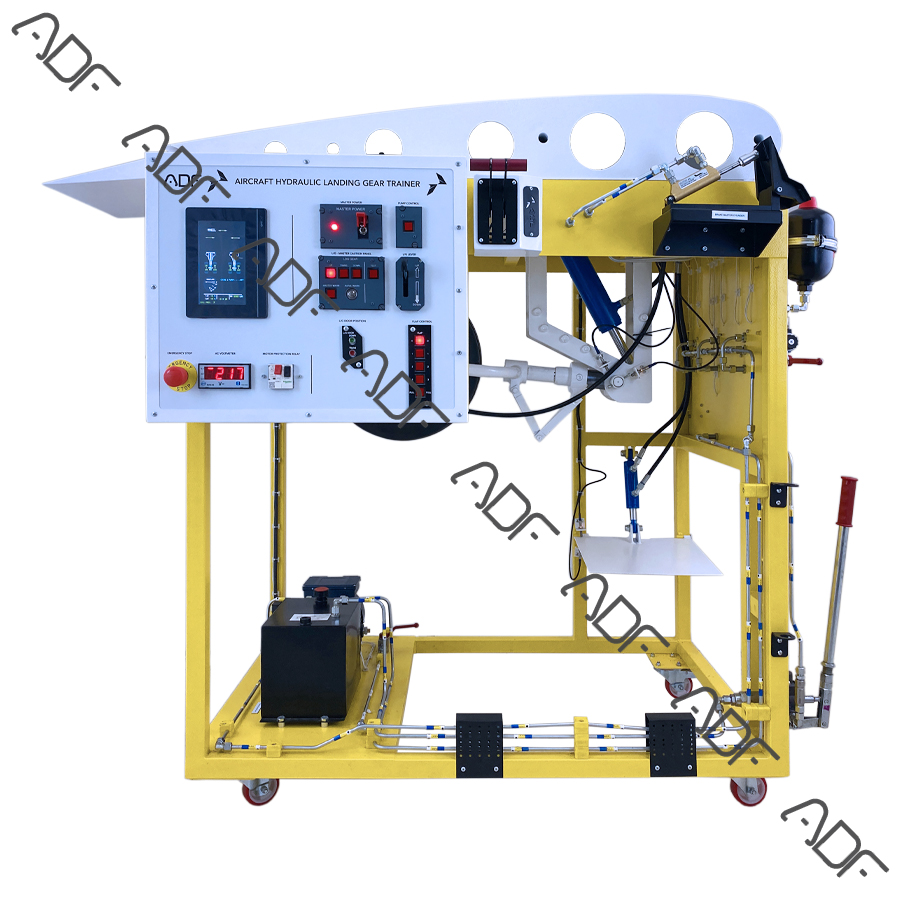 It assures that technicians are trained to maintain the landing gear system in the best way possible and in accordance with safety standards. It displays the landing gear mechanism as found in actual aircraft. This trainer is designed to represent a landing gear system. It contains all components and assemblies of an actual hydraulic landing gear system.