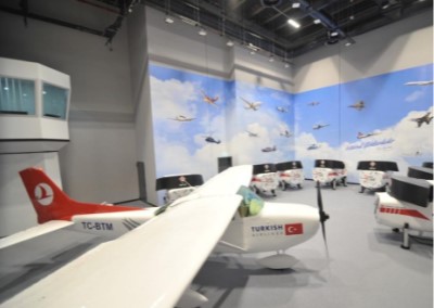GUHEM için aviation academy isimli alanda uçuş ve simülatör kullanımı eğitimleri için tasarlanan alanda simülatörlerin üretimini ve kurulumunu ana paydaşımız BTSO ile 2020 yılında tamamladık.