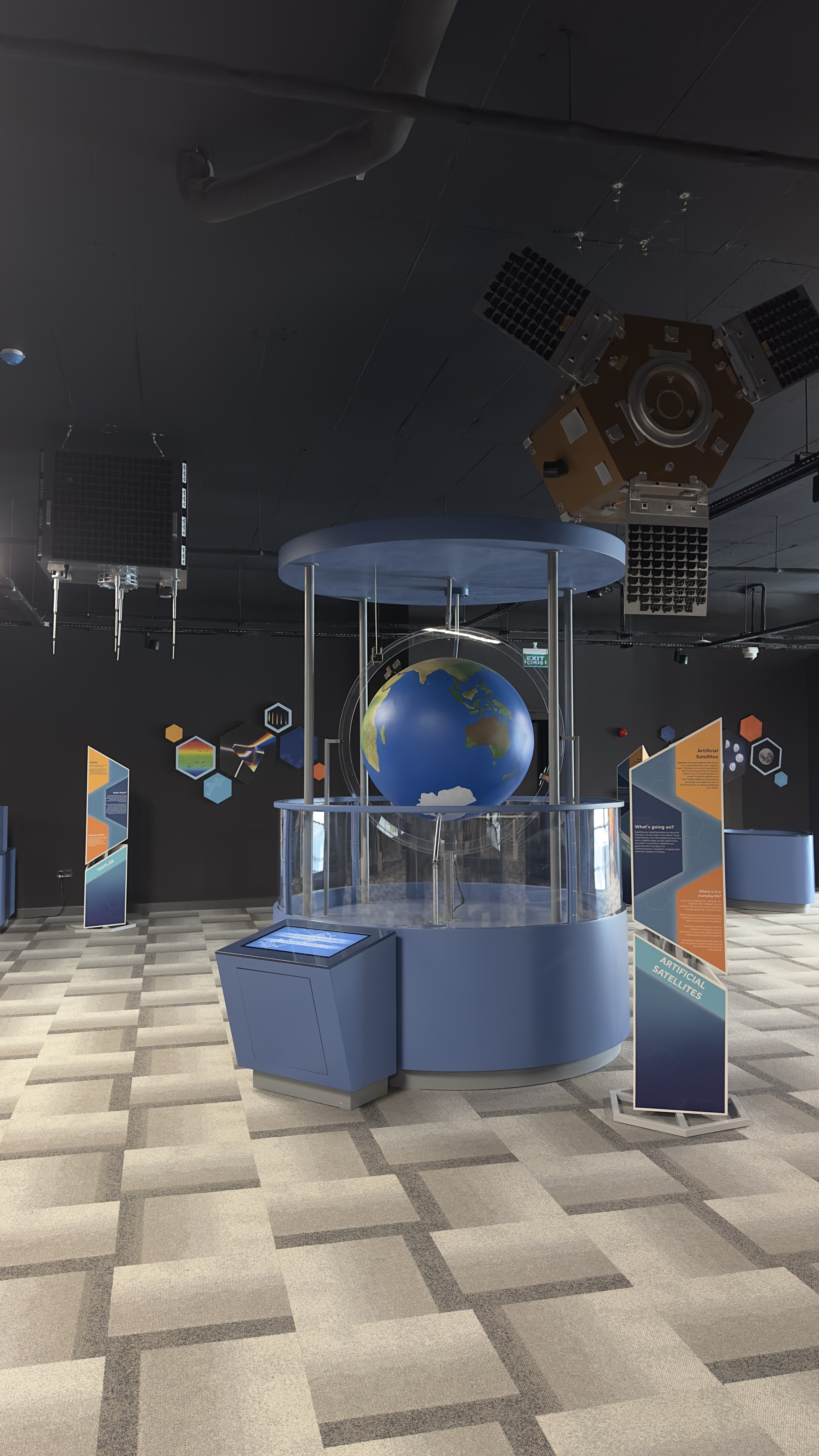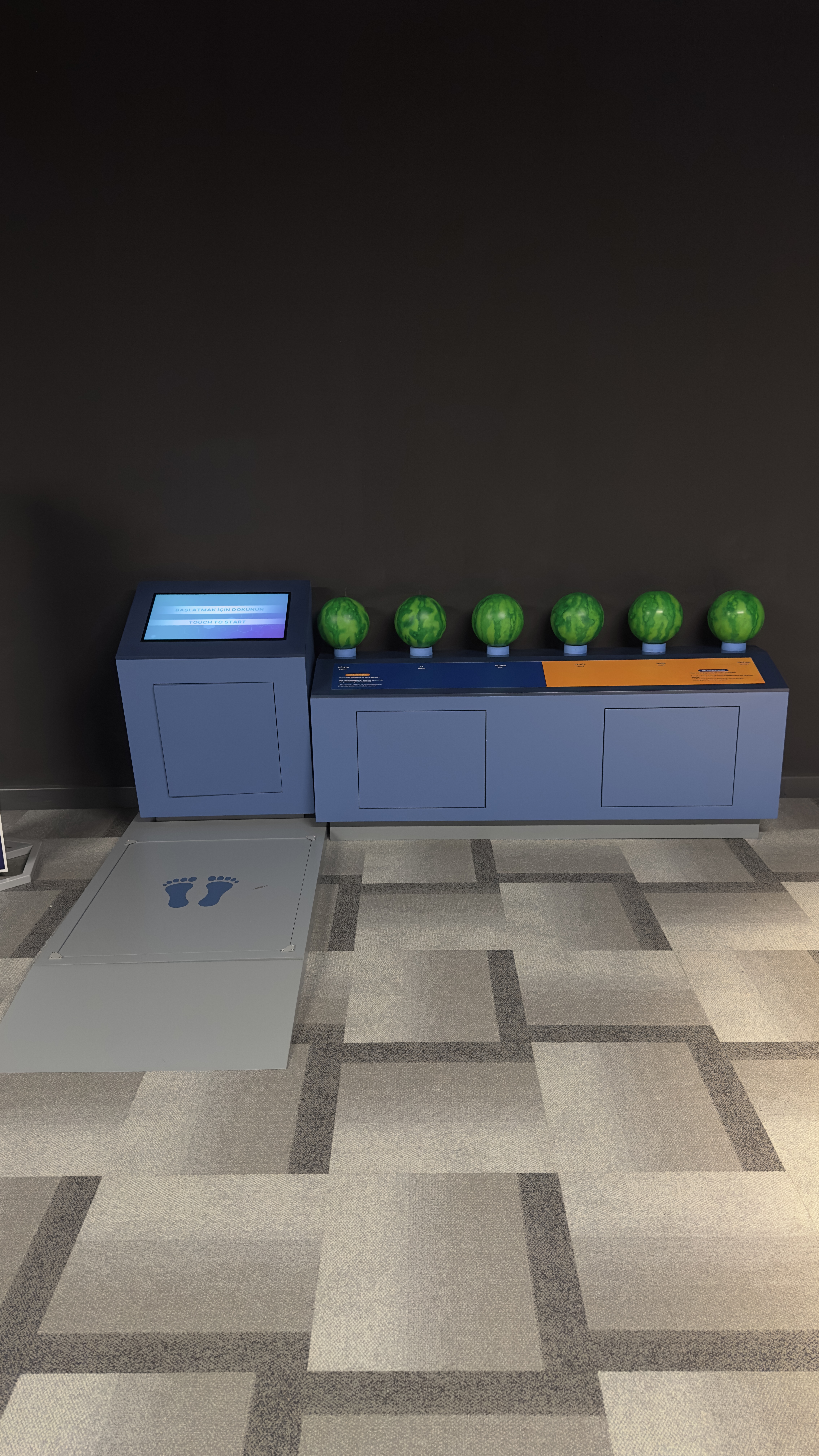 Trabzon Bilim Merkezi için uzay ve havacılık temalı gezici nitelikli sergilerin ve sergi unsurlarının üretimini ve kurulumunu ana paydaşımız TÜBİTAK ile 2023 yılında tamamladık. Tamamlanan sergilerin ana başlıkları ise şu şekildedir :